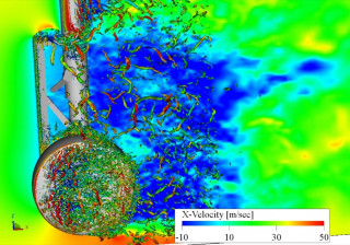 Visualisation of vortices created by a part of a landing gear. Simulation performed by TU Delft within the project INVENTOR (EU 8605383).