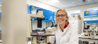 Wanneer Anna Posthumus Meyjes (42) over haar vak vertelt, spat het enthousiasme van haar gezicht. De docent-onderzoeker Biologie & Medisch Laboratoriumonderzoek aan de Hogeschool Leiden ademt bevlogenheid. “Ik word er blij van om studenten te laten zien wat ik zelf in het lab heb meegemaakt. Als je dat enthousiasme weet over te brengen, dan ontstaat er écht iets.”